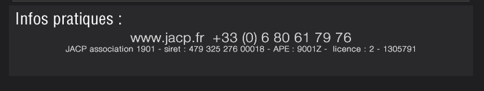 www.jacp.fr  +33 (0) 6 80 61 79 76 JACP association 1901 - siret : 479 325 276 00018 - APE : 9001Z -  licence : 2 - 1305791